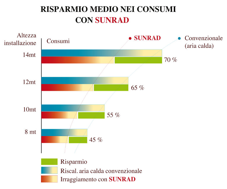 - Vzhledem k velké výšce kostelů, záření umožňuje získat dostatečnou teplotu se spotřebou až o 70% nižší než je u konvenčního systému.